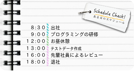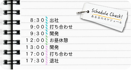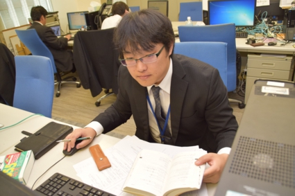 システムエンジニアというと、PCに向かってコツコツ作業することをイメージしていたのですが、「人と話さないなんてことは、ありえないですね。長期間のプロジェクトに関わるときは、チームの人たちといい人間関係をつくることも重要な仕事」と教えてくれました。