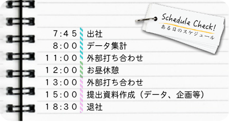 今では、スピーディーにデータをまとめ、会議での報告も任されているそう。赤迫さんも営業を経験したので、その活動をサポートしていく今の仕事に、自身の成長とやりがいを感じているそうです。