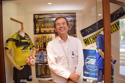 仕事をするうえで大切なのでは、「頭だけでなく、体も一緒に動かすこと」と語る有賀専務は、小学5年生の頃からサッカーを始めました。「私たちのチームにはコーチがいなくて、自分達で練習方法も考えていました。戦術が描けても、フィールドを駆け巡るだけの体力と、思いやりのあるパス、的確な判断とチームワークがなければ勝てない。その時学んだことは、今の仕事にも活きています」。