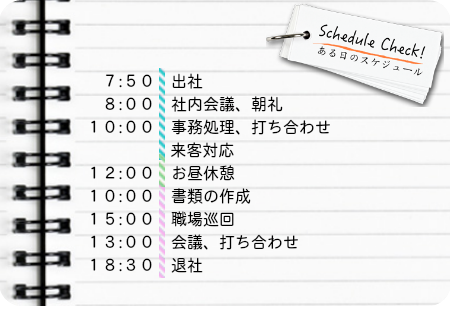 学生時代にやっておくべきことを聞くと「勉強」その一言でした。テスト対策のための一夜限りの勉強では、その場ではわかっていても、時間が経つと忘れてしまい、深い知識は身につかない。「働いてみると、学校で学んだ専門的な知識が、今の仕事に繋がっていたと気づくことも多いんですよ」と、教えてくれました。そんな松下さんは、昨年会社の模範として、優良従業員にも推薦されたとか。常に学び続ける姿勢が、周囲からの評価を得ているのではないかと感じました。