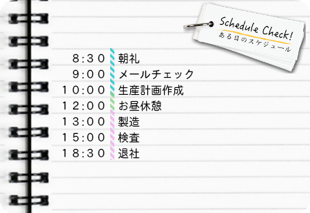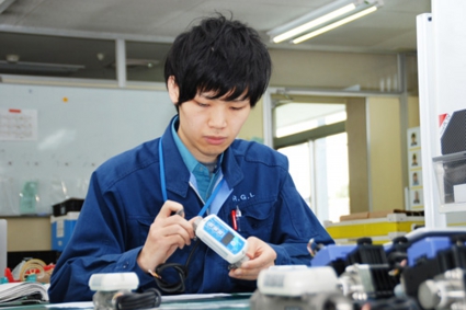 技術向上を図るため、社内外での研修も盛んに行われており、現在松下さんは、信頼される製品を提供するために品質管理に関するQC検定の資格取得を目指しています。休日は朝から勉強をはじめ、気がつくと夜になっていることもあるそうです。