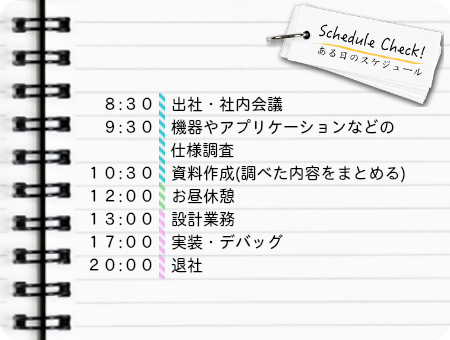 新人時代に比べ、計画をちゃんと立てられるようになったというHさん。Plan→Do→Check→Actionというプロセスを意識して仕事の効率を上げることは、社長にもいつも言われていて、心がけています。学生のうちからそれができるようになれば、僕みたいに苦労しないかもしれませんね(笑)」と語ってくれました。