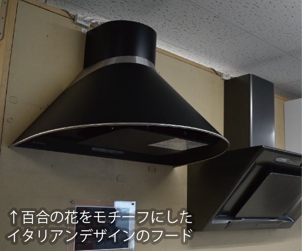 現在、機能面の他、音、掃除のしやすさ、薄型などが求められるレンジフードですがそれ以外にも、見た目へのこだわりも追求しています。最近ではイタリアのデザインと富士工業の技術を融合したビンテージ感を表現しながらも使い勝手の良さと細部にこだわりをもったおしゃれなレンジフードも作られました。